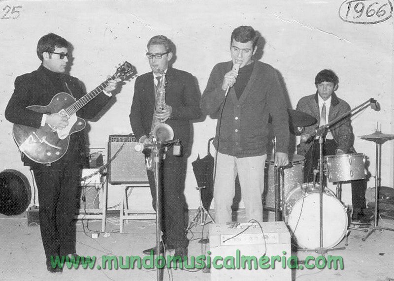 En este grupo veo parte de mi primera amplificación, con el eco de cinta detrás de mí y los micrófonos AKG.